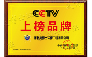 2016年2月中央電視臺(tái)廣告部授予美博士央視上榜品牌榮譽(yù),美博士與國(guó)外多家專業(yè)環(huán)保產(chǎn)品研發(fā)機(jī)構(gòu)建立戰(zhàn)略合作伙伴關(guān)系,并有自主研發(fā)人員,滿足個(gè)人、家庭、工程單位等不同環(huán)境下需要治理的客戶需求。