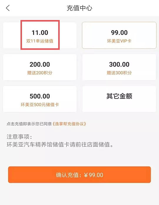 3、凡參與活動充值未中獎的用戶即可到環(huán)美亞門店進行優(yōu)惠洗車1次(選擇到店洗車有效期15),如不選擇洗車可加價選擇店內(nèi)其他服務項目。